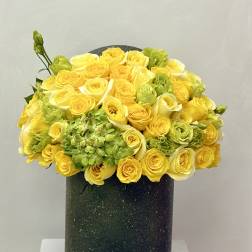 Price: $145.00Lemon Zest Delight Hat Box By VLM Flowers
